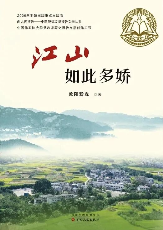 《江山如此多娇》未列入作家出版社“2020年决战脱贫攻坚系列丛书”,应该是书稿完成时间略晚了一些。该书由百花文艺出版社2021年初版,以六位作家的六部报告文学丛书的形式出版,且标注为2020年主题出版重点出版物,“向人民报告——中国脱贫攻坚报告文学丛书”“中国作家协会脱贫攻坚题材报告文学创作工程”。
