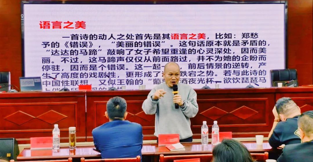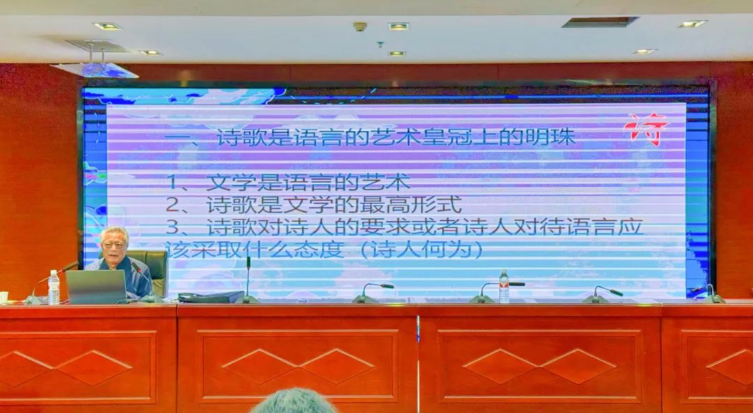 开班仪式后,黑卫平先生以《诗词格律及变通》拉开了此次诗歌大讲坛的序幕,在两天的时间里,安斯寿先生以《诗歌鉴赏与诗歌创作》,南鸥先生以《诗意的发现与开掘》《虚与实的完美结合》、《世界美术史的离奇事件与诗歌的先锋性》、《有效的表达与表达的有效性》,赵俊涛先生以《诗歌语言的特性》、詹家雨女士以《AI与文学创作》为题为与会诗人奉上了精彩的课程。