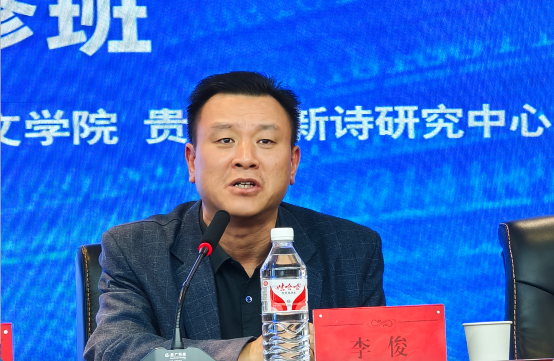 李俊先生在讲话中回忆了贵州师范大学各个时期文学社团的活动,高度赞美了大学文学社团对大学生心灵的滋养与人文情操的培养,同时建议贵州诗歌大讲坛与诗歌进校园完美结合起来,形成一种长期的系列活动,为丰富高校文学社团的活动发挥贵州省诗歌学会的专业优势,并预祝此次诗歌研修班成功举办。