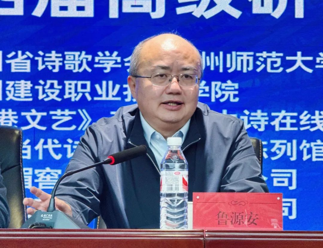 接着鲁源安先生说:“诗歌文化走进校园是一个传统,我在省教育厅工作期间,2006年时,提出开展“多彩校园·闪亮青春”全省大学生校园文化活动的建议,从那时起,“多彩校园·闪亮青春”活动,持续开展了近20届,至今每年还在组织开展,成为我省大学校园文化活动的一张名片。很高兴贵州省诗歌学会本次研修班能够在贵州建设职业技术学院举行。”