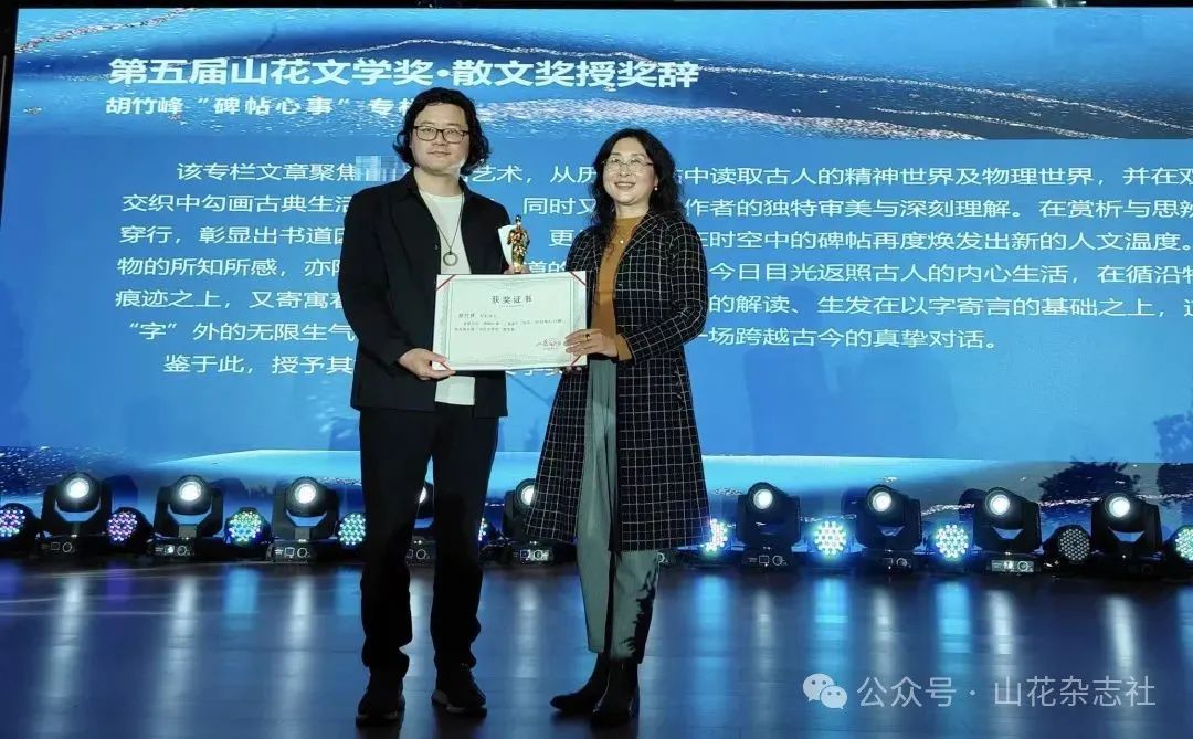 颁奖嘉宾梁彬为胡竹峰颁奖