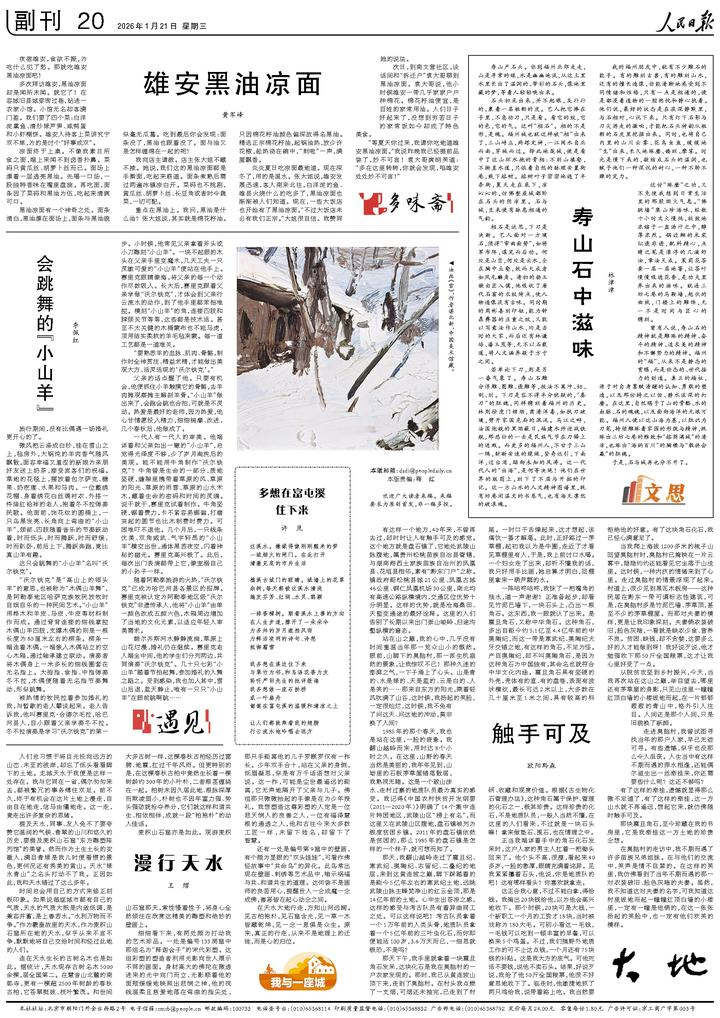 《人民日报》2026年1月21日副刊触手可及文/欧阳黔森有这样一个地方,40年来,不曾再去过,却时时让人有触手可及的感觉。这个地方就是盘石镇了,它地处武陵山脉腹地,属贵州松桃苗族自治县管辖,与湖南湘西土家族苗族自治州的凤凰县、花垣县相邻,素有“黔东门户”之称。镇政府距松桃县城21公里、凤凰古城46公里、铜仁凤凰机场30公里,南北均有高速公路纵横境内,交通区位优势十分明显。这样的优势,就是沧海桑田、天堑变通途的最好诠释。这里的人们告别了长期以来出门崇山峻岭、归途沟壑纵横的窘态。