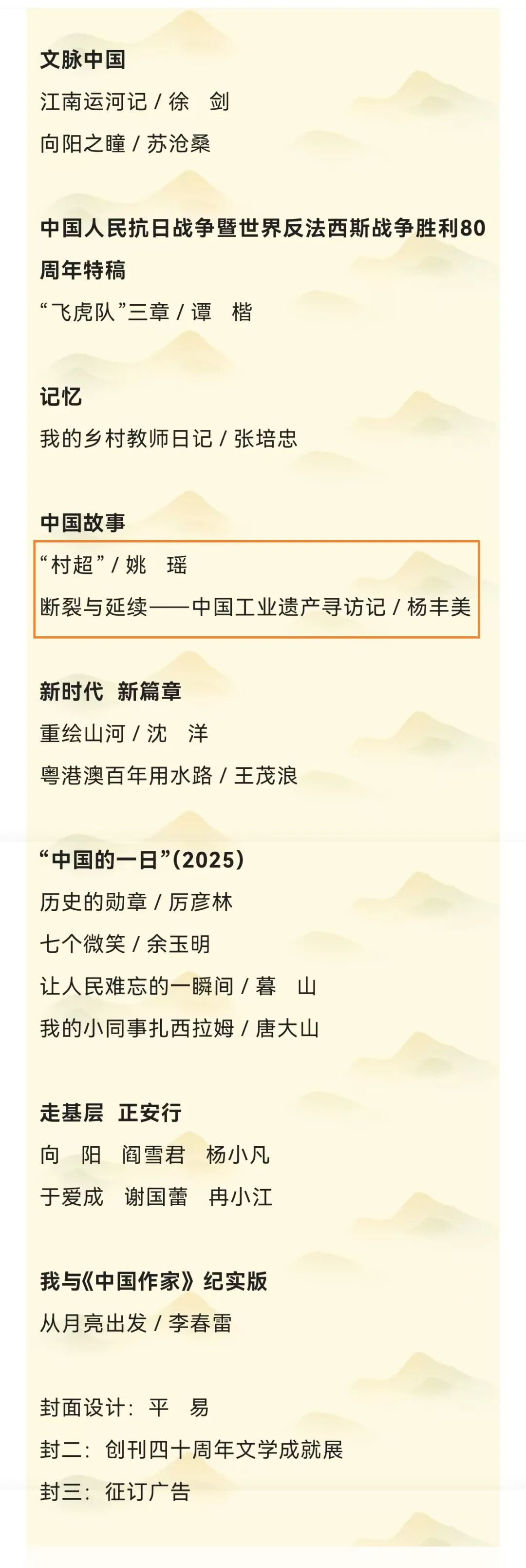千亿流量背后的文学表达!姚瑶长篇报告文学《“村超”》亮相《中国作家》