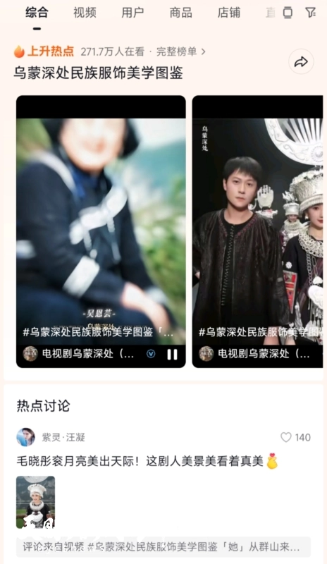 除了自然风光,剧中的服饰美学同样引发关注。剧组专门定制260套民族服饰,展示鸟、蝴蝶、鱼龙等象征意义的苗绣纹样。其中毛晓彤的一套苗族戏服重达30斤,精致的工艺与厚重的文化感令人印象深刻,相关话题#乌蒙深处服饰美学图鉴#吸引270万余人驻足观看。